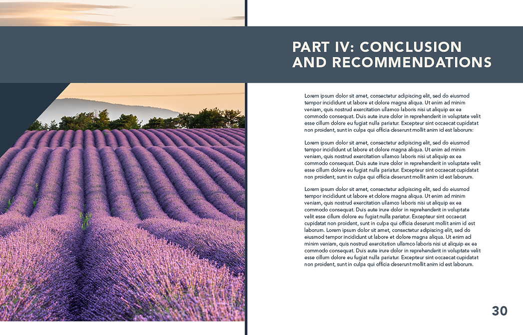 This Final Report was a layout project created for a company to present the research process and methodology, findings, and emerging themes from data gathered through a series of interviews, focus groups, and surveys. Utilizing InDesign, I designed the Final Report using the company's brand colors, typefaces, photography and style guide. This design encompasses a consistent look and feel using shapes and layout to best represent the company's style.